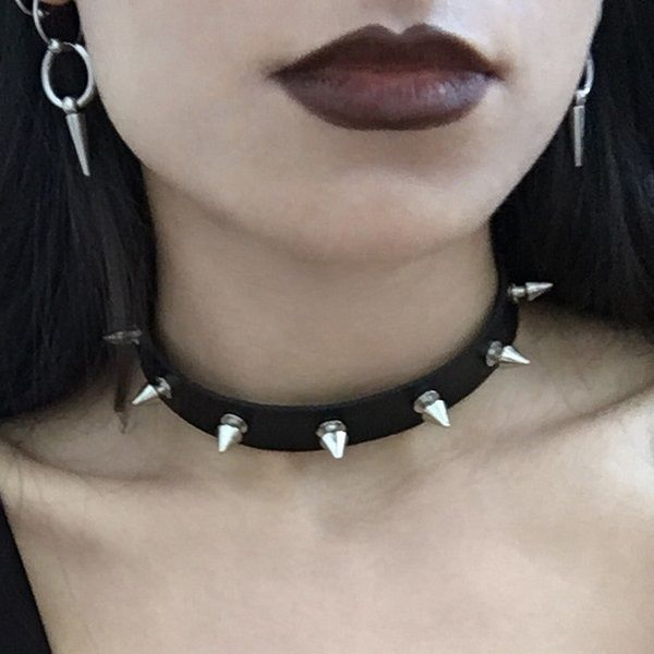 Кожаные чокеры с шипами популярны в панк- и готической моде.