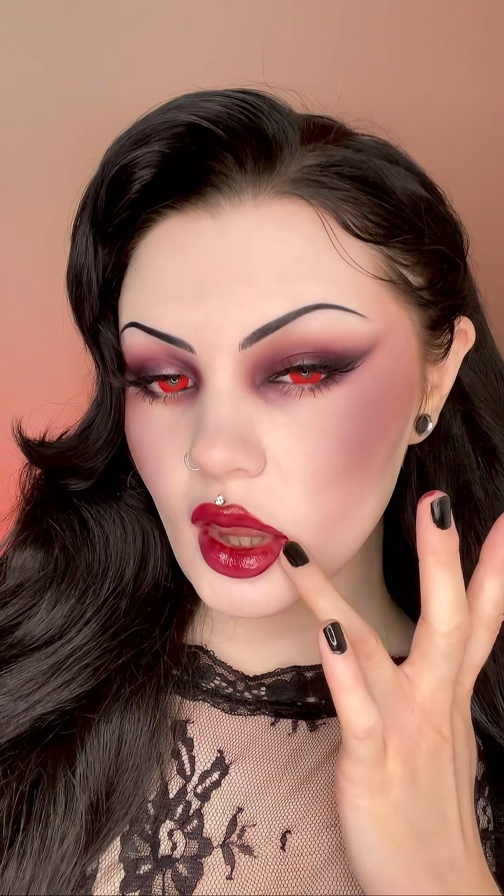 Сочетайте яркие губы с острым карандашом, чтобы создать соблазнительную форму, имитирующую клыки. Идеально подходит как для готического вечера, так и для впечатления на тематических мероприятиях.